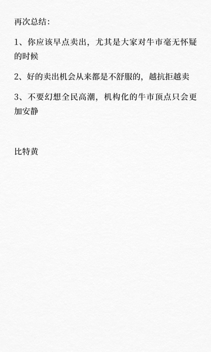 1. 早点卖出,尤其是大家对牛市毫无怀疑的时候。